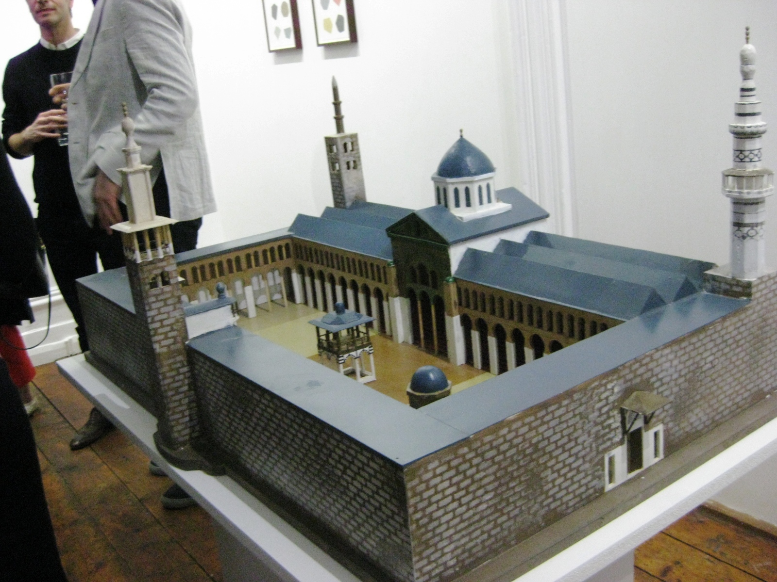 and a model of the Umayyad Mosque in Aleppo, now very damaged, made by Tmam Alkhidaiwi Alnabilsi, a Syrian refugee currently living in the Zaatari Camp outside Jordan.