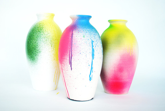 Lina Patsiou showed her Chromatography system where a sprayer coated a vase with 26 colours relating to the letters of our alphabet. You enter different letters to create a particular finish. The possibilities of this would be interesting to explore; because of the nature of spraying, I imagine that even the same word would produce a slightly different piece.