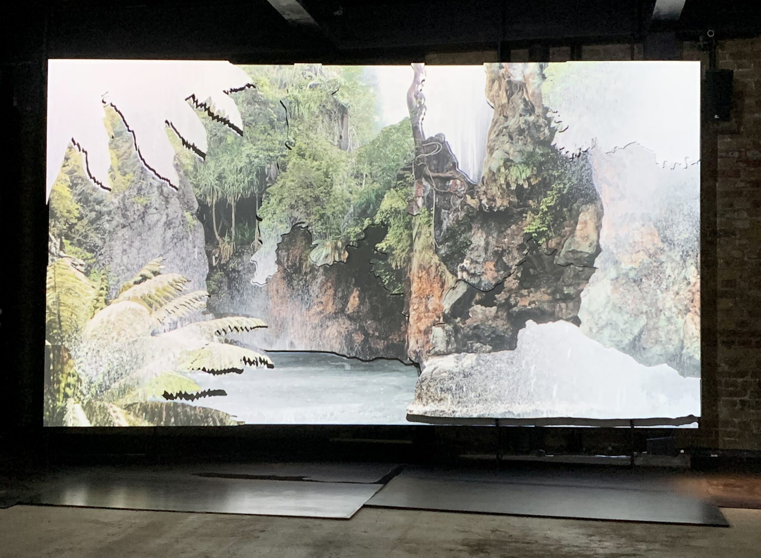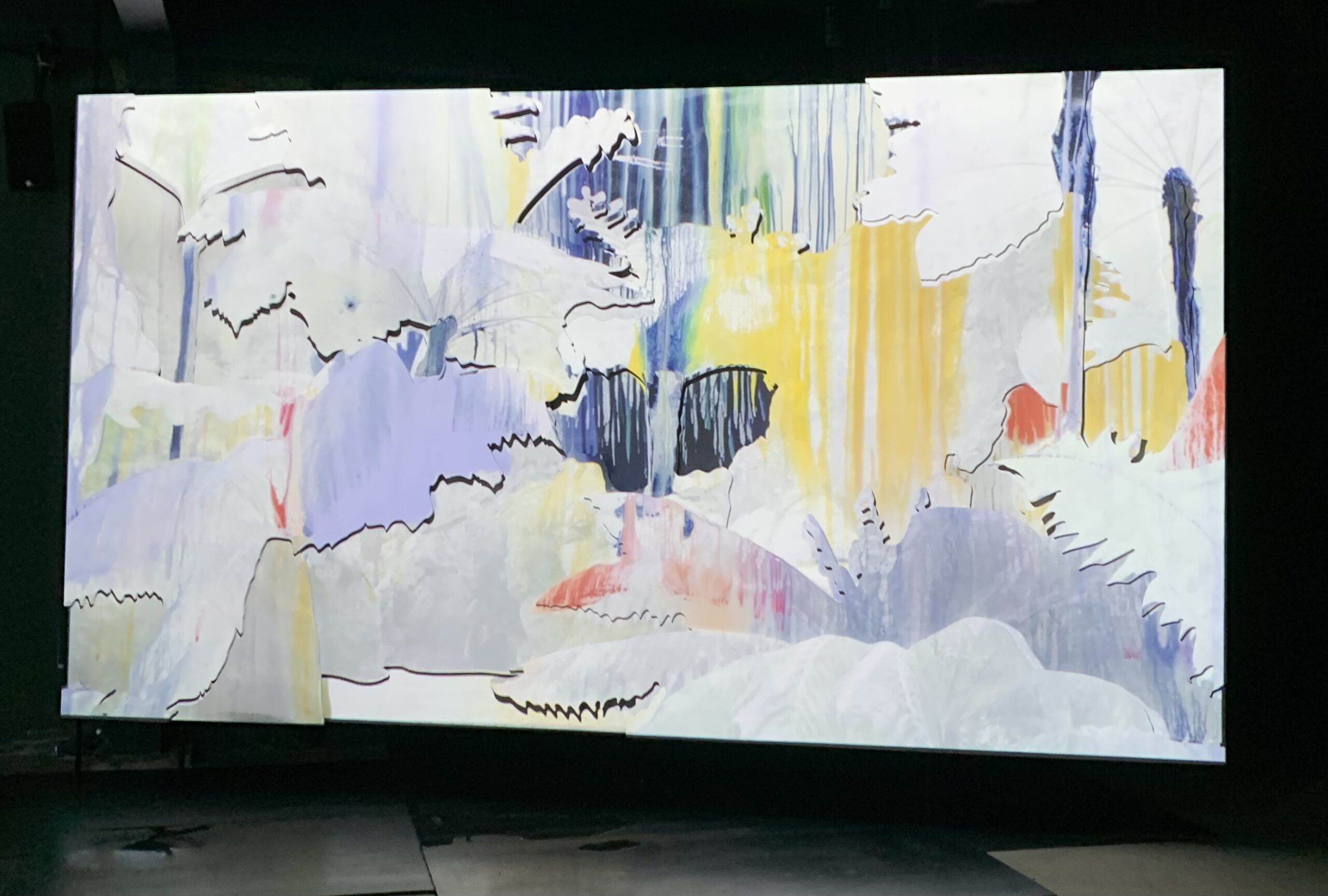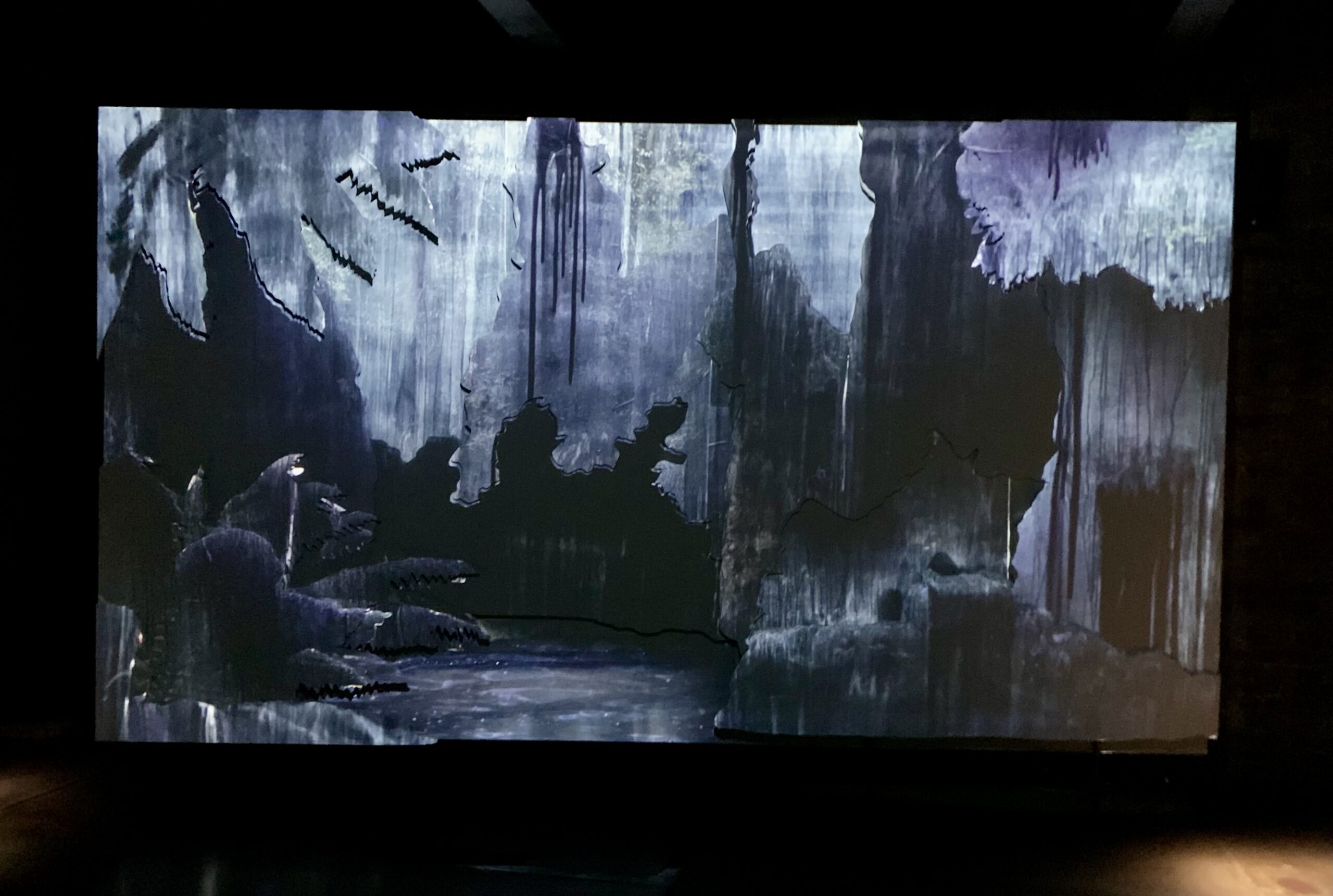 The videos were on a loop from dark to light and back so here are some shots of the process. It was accompanied by a soundtrack of nature and water with dye actually dripping around the screens onto the metal floor plates.