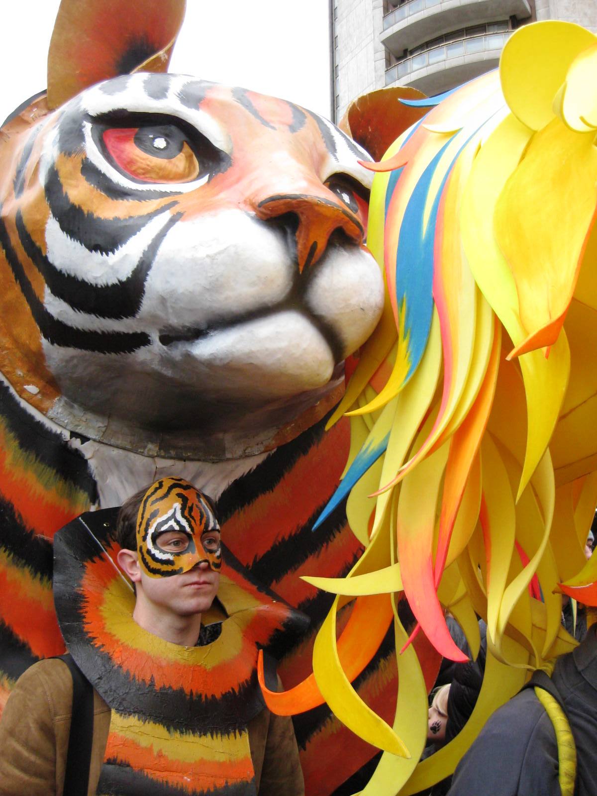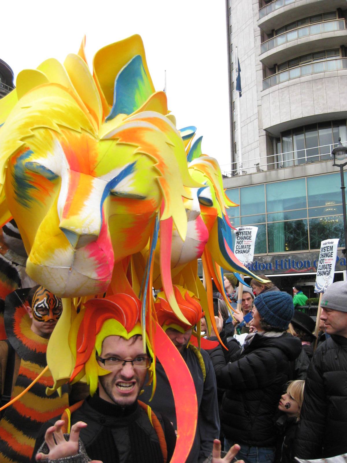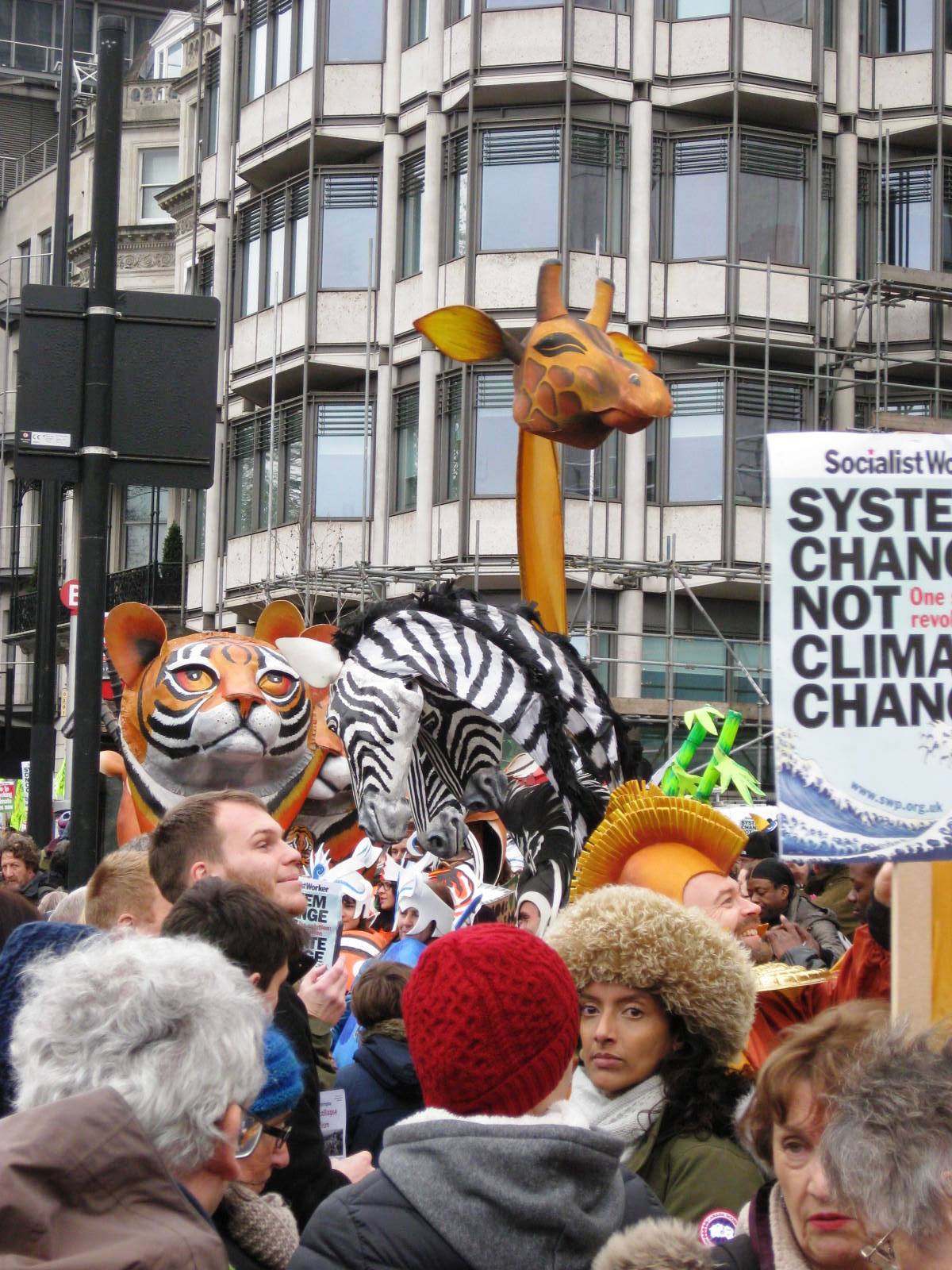 Wonderfully mobile animal heads at the beginning of the march at Hyde Park Corner