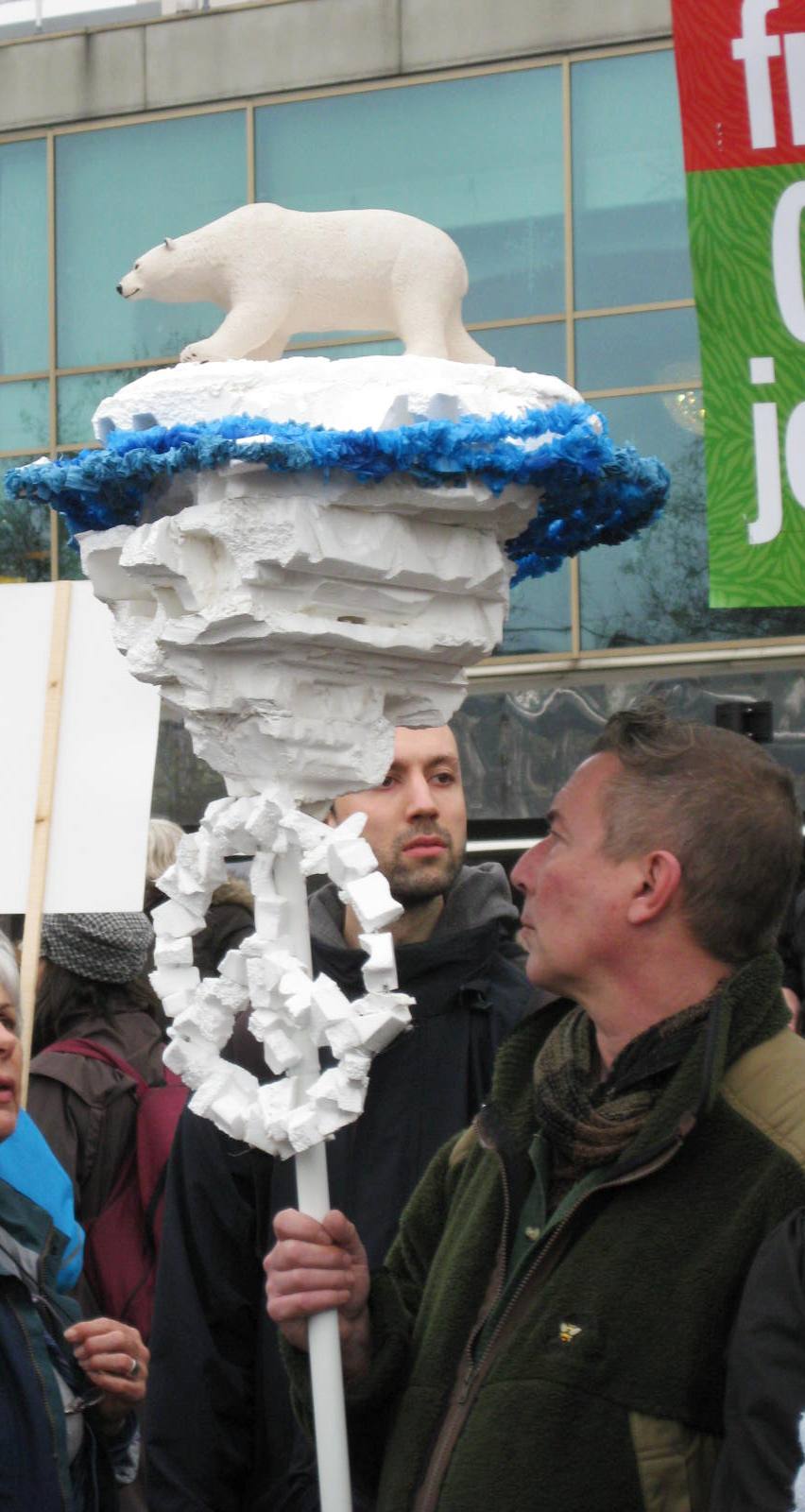 Polar bear topped ice floe by a CND supporter