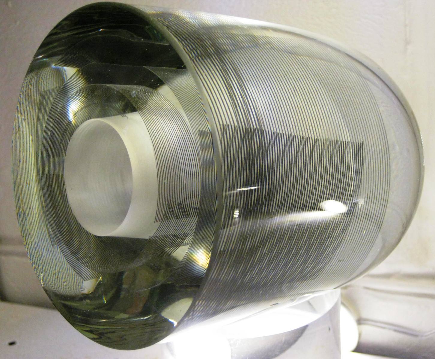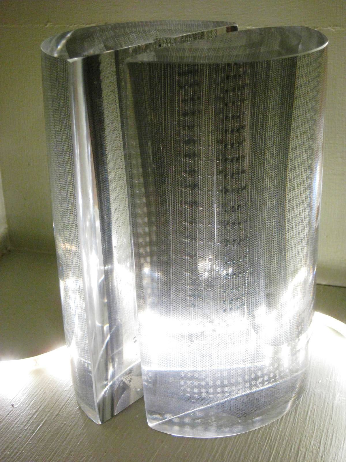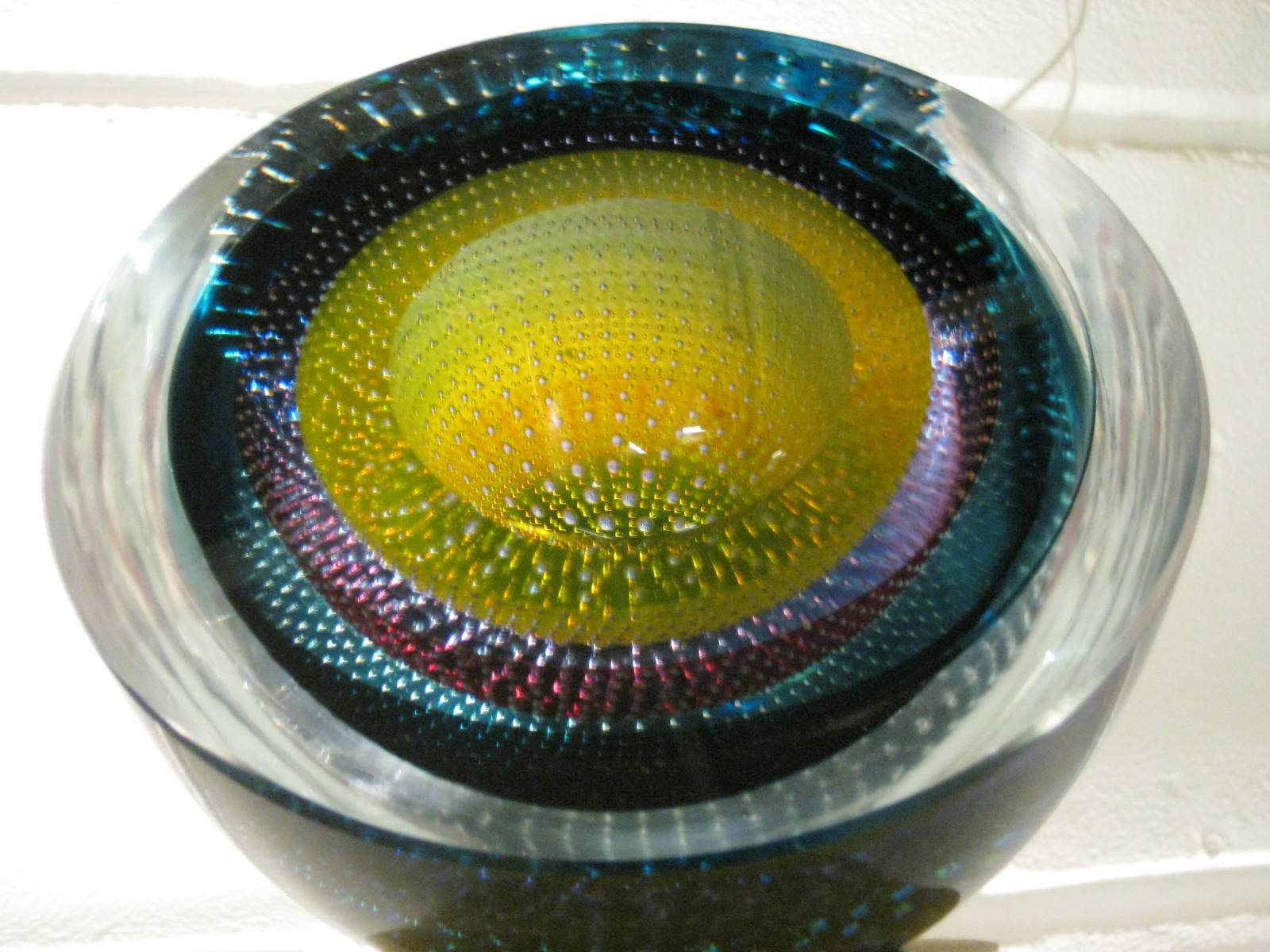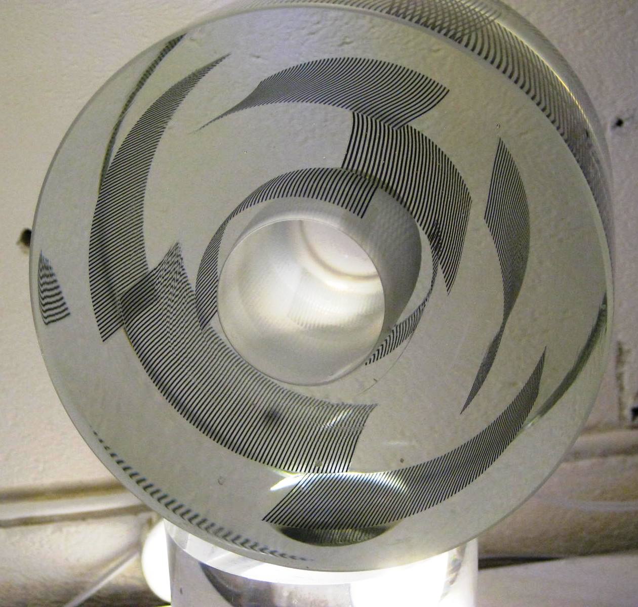 A maker I hadn’t met before showing at Cockpit was Shelley James and there was no way I couldn’t stop after seeing these glass pieces. The one below contains a poem, the strips of text legible according to the angle of the ball.