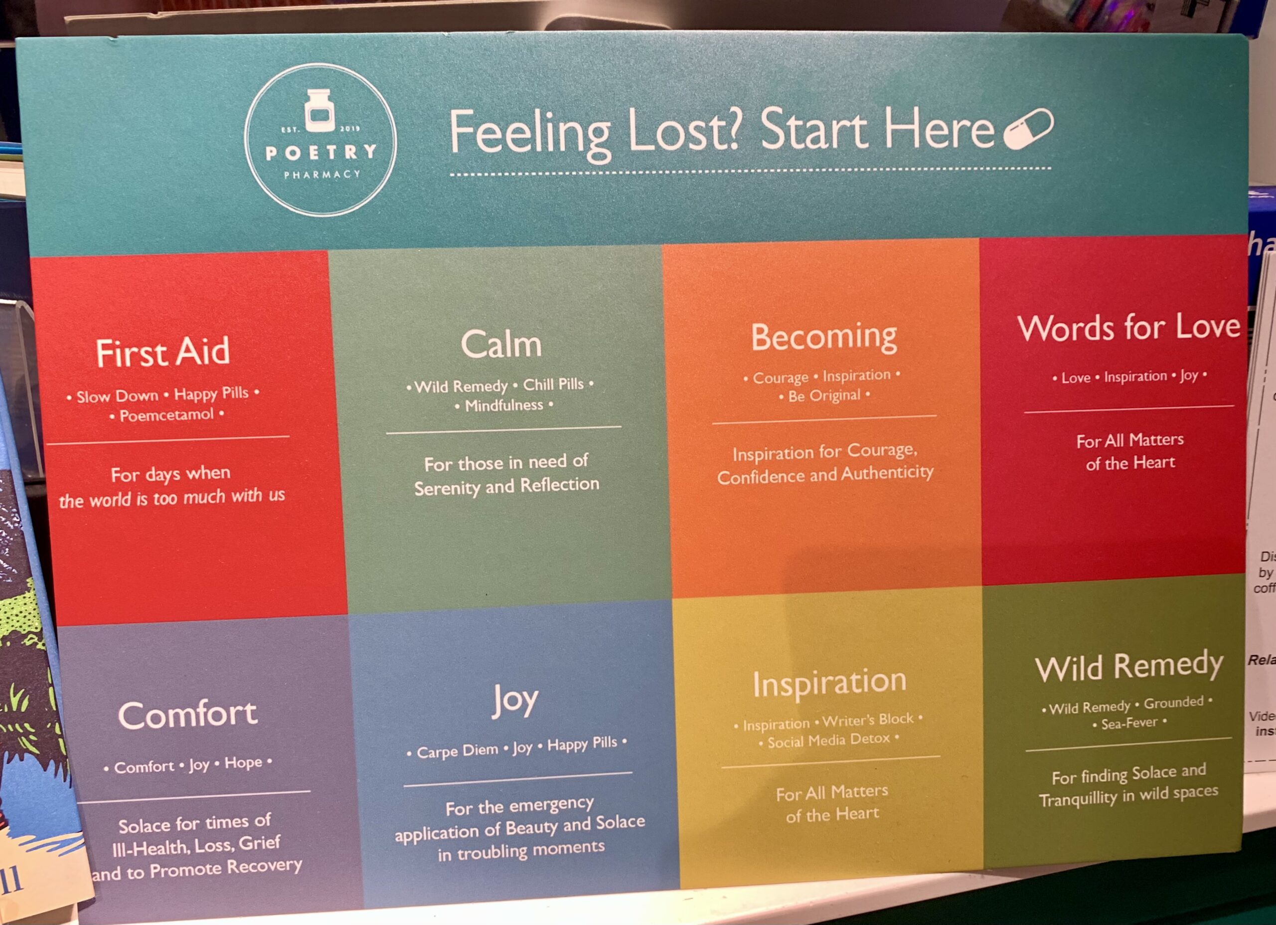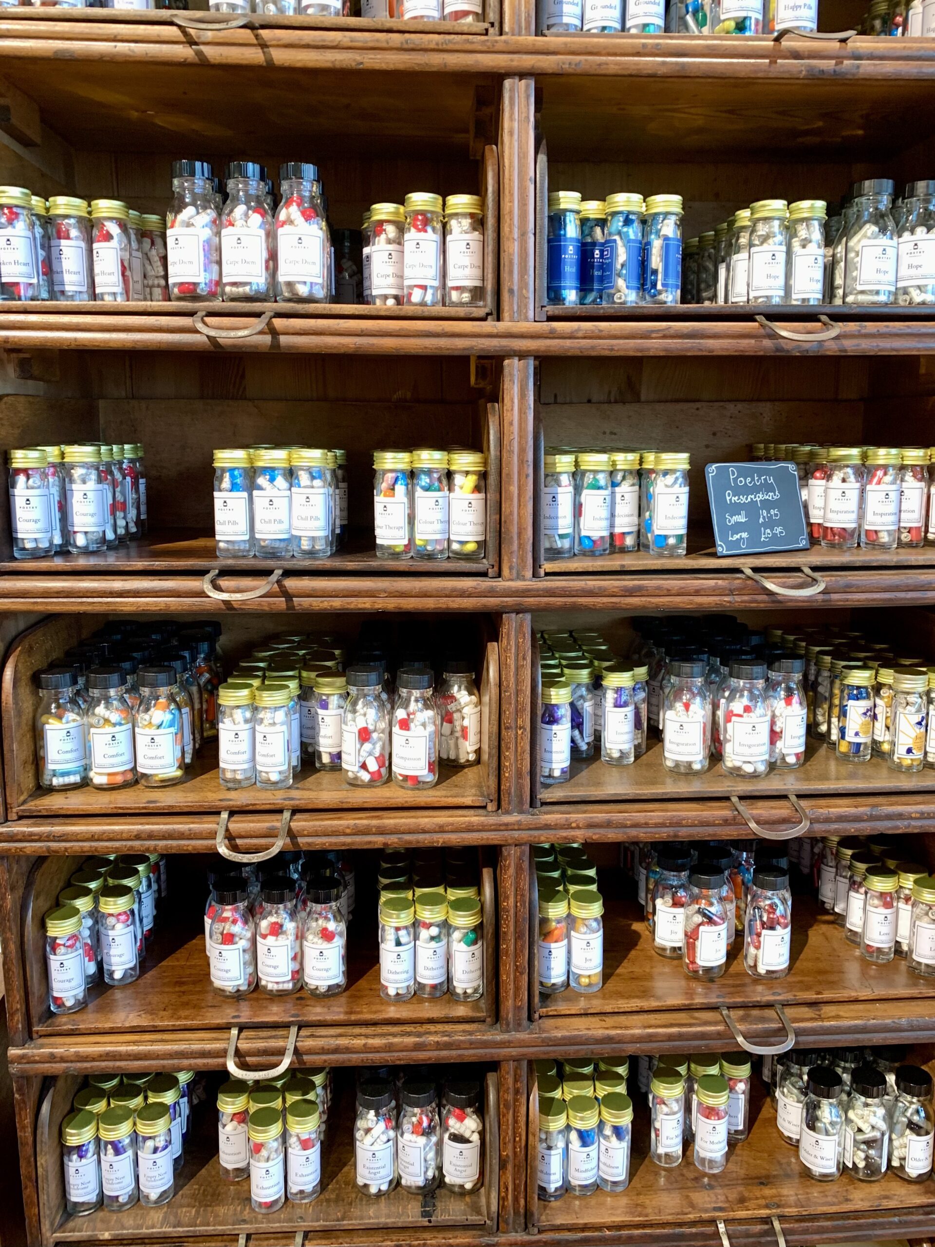 The Poetry Pharmacy describes itself as “The world’s first ever Poetry Pharmacy offering walk-in prescriptions, literary gifts, and books to address your every emotional ailment”. It’s a delightful concept.