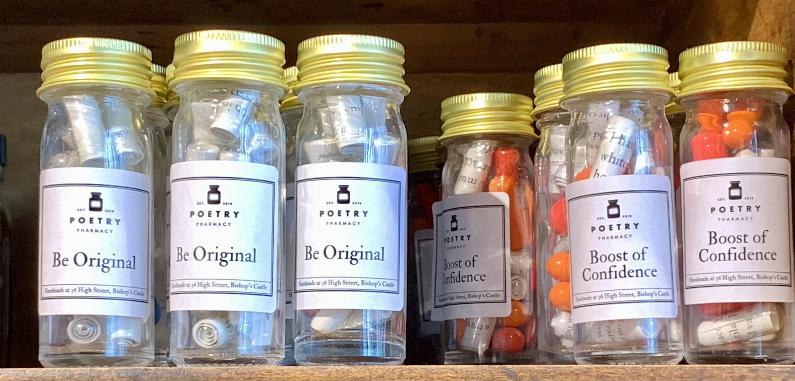 You can choose from a wide variety of bottles with prescriptions for anything from dithering to confidence boosting. Even if you’re not into any of that, the poetry book and gift selection is pretty comprehensive.