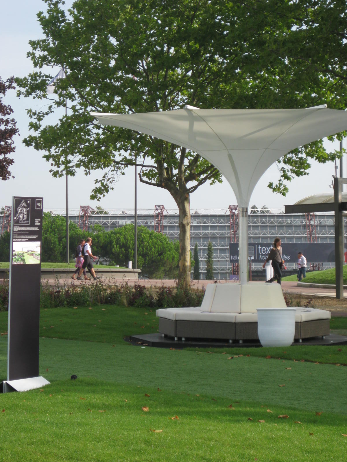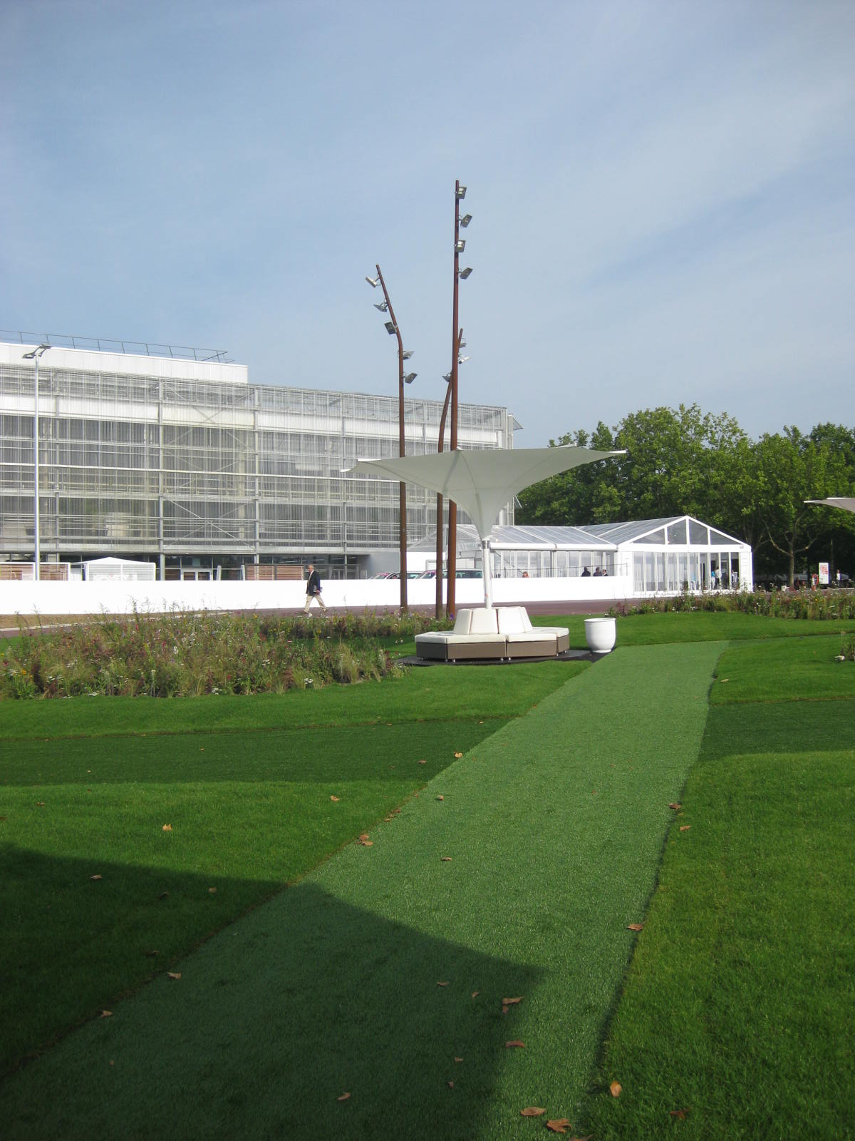 The area outside Hall 8 was planted with real and fake turf enabling us to walk without getting sodden in the occasional downpours. The main exhibitors including the Kettal Group and B+B Italia etc are obviously aiming at large contracts such as hotels, resorts and large residential projects, but some exhibitors also showed how their products could work in a smaller space.